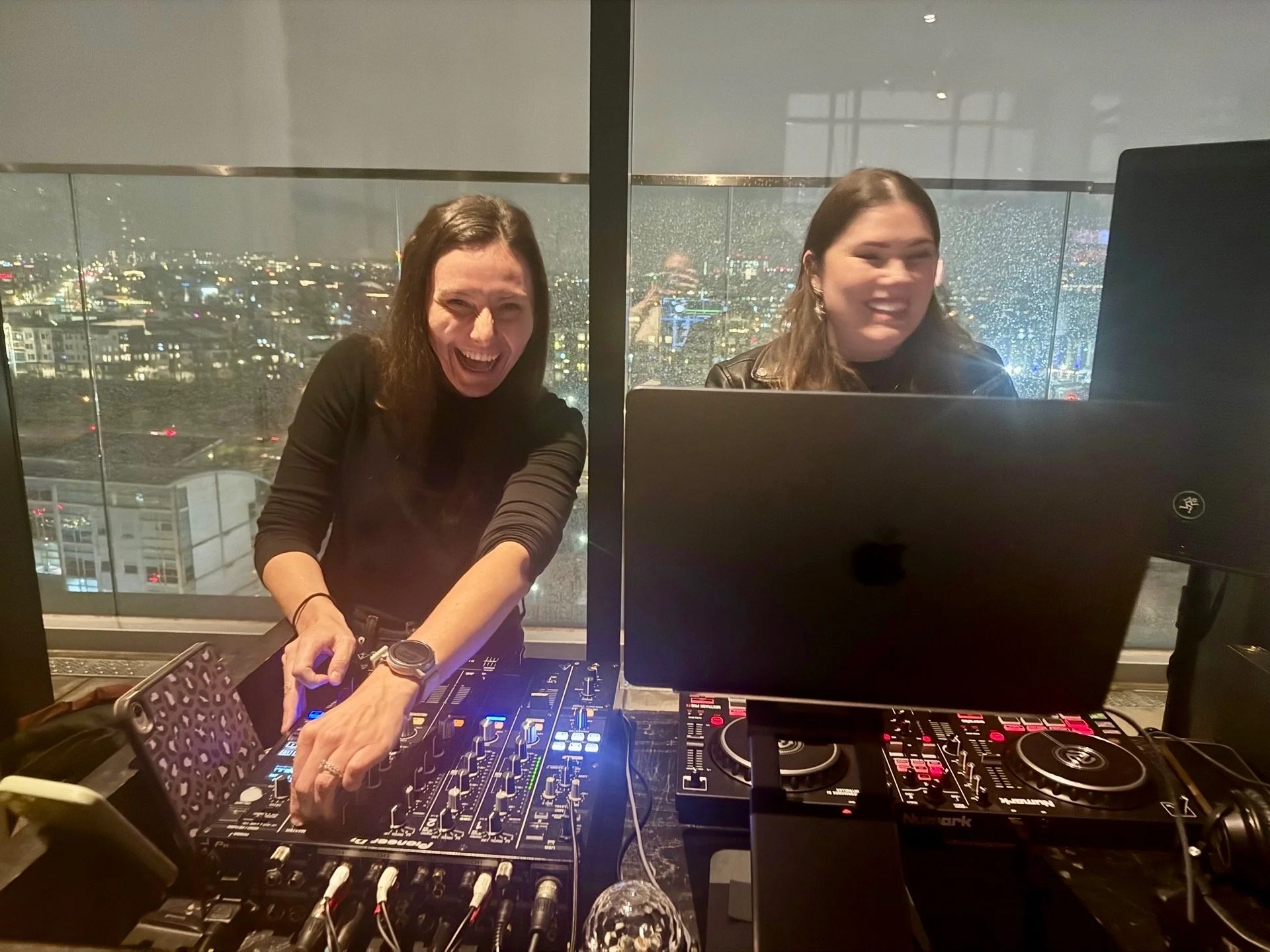Our first gig was a company Christmas party, and we had the time of our lives building the night song by song through our cohesive mixes, taking requests from excited attendees, and watching the dance floor come to life. We left that night completely energized by the joy we got to create in the room. That was the moment we realized this wasn’t just a one time side quest, it was the start of a creative venture we knew we needed to follow.